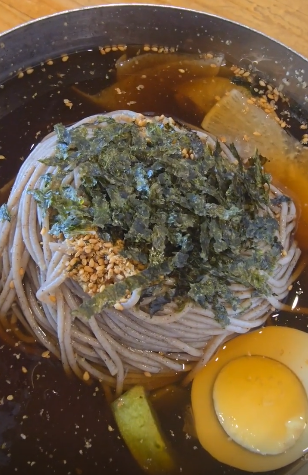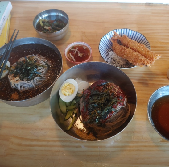 특징: 막국수와 소고기 편채를 함께 싸서 먹는 조합이 환상적입니다. 육수가 자극적이지 않고 깊은 맛을 내어