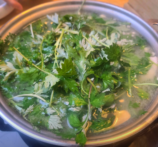 도다리쑥국: 통영식 조리법을 따르며, 된장을 연하게 풀어 자극적이지 않고 쑥향이 진하게 배어 나오는 국물 맛이 일품입니다.