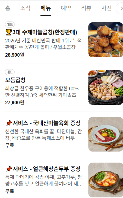 • 모듬 곱창 (2인 이상): 1인분 기준 2만 원대 중후반