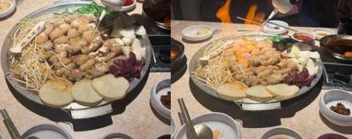 조리 방식: 주방에서 초벌 되어 나오며, 테이블에서 화려한 불쇼와 함께 마무리해 잡내를 잡고 풍미를 살려주는 것이 특징입니다.